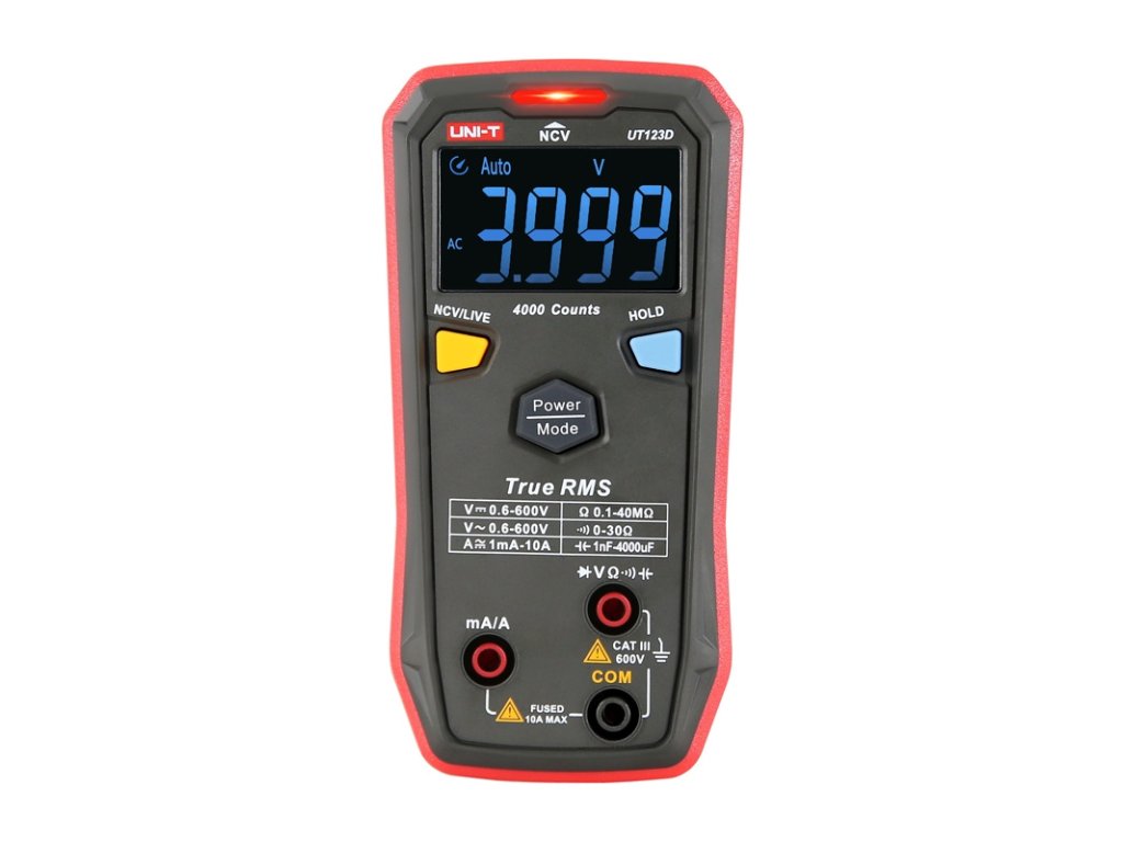 Vďaka automatickému rozpoznaniu typu testovaného signálu multimeter UT123D výrazne uľahčuje každodennú prácu a eliminuje potrebu manuálneho výberu rozsahu. V prípade potreby môžete stlačením tlačidla rýchlo prepnúť na meranie kapacity. Zabudovaná funkcia True RMS zabezpečuje presné merania aj pri nesinusových signáloch a technológia NCV/Live umožňuje bezpečne zisťovať napätie bez dotyku vodičov.