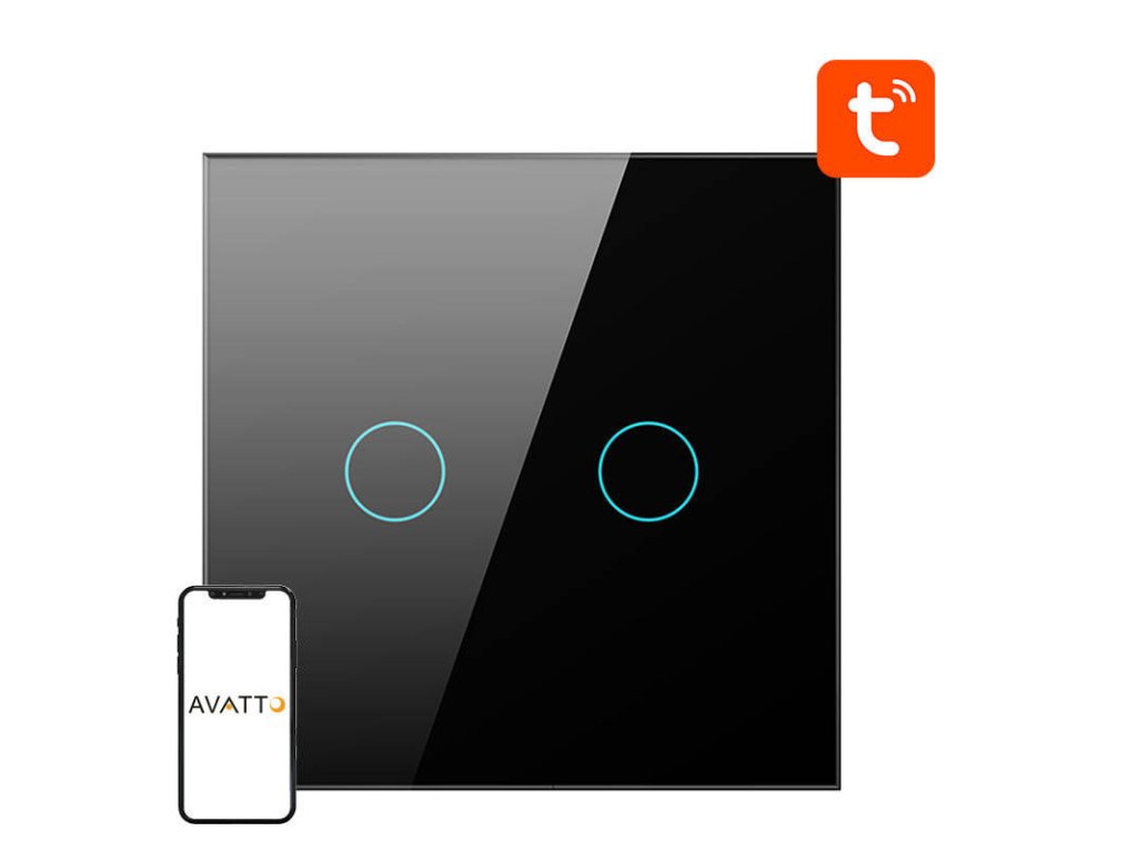 Inteligentný vypínač svetla ZigBee Avatto ZTS02-EU-B2 2 Way TUYA (čierny)