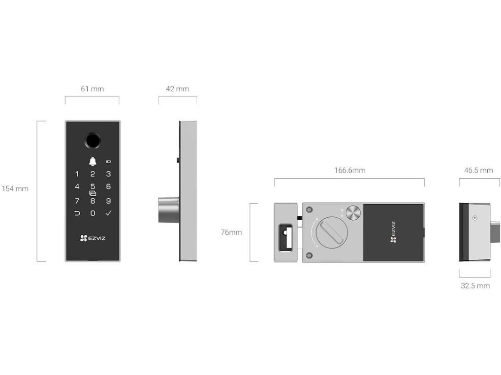 EZVIZ DL03 Pro jest gotowy do szybkiego montażu zaraz po wyjęciu z pudełka, zapewniając bezproblemową i oszczędzającą czas instalację. W zestawie znajdują się specjalne podkładki, które umożliwiają dopasowanie wewnętrznego panelu zamka do drzwi, tak aby rygiel idealnie trafiał w zaczep.