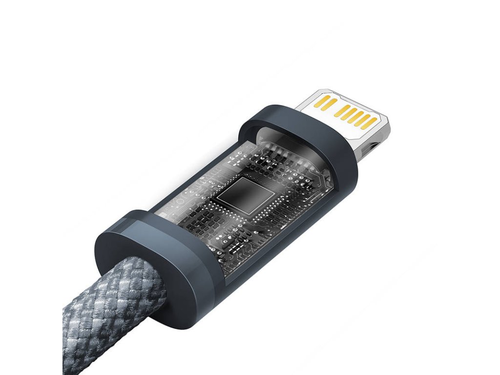 Kábel je vyrobený z vysokokvalitných produktov, ako sú súčasti ABS odolné voči oxidácii a vyblednutiu. Gumové časti slúžia ako ochrana portov a kovových svoriek telefónu. Opletený nylonový plášť chráni kábel zvonku a zabraňuje deformácii a poškodeniu, ktoré je možné v dôsledku ohýbania. Súčasťou balenia je pásik na suchý zips, pomocou ktorého môžete kábel v zloženom stave upevniť. Kompatibilný so zariadeniami Apple od série 12 po 6S. Výrobok je kompatibilný s protokolom 18 W a 20 W.