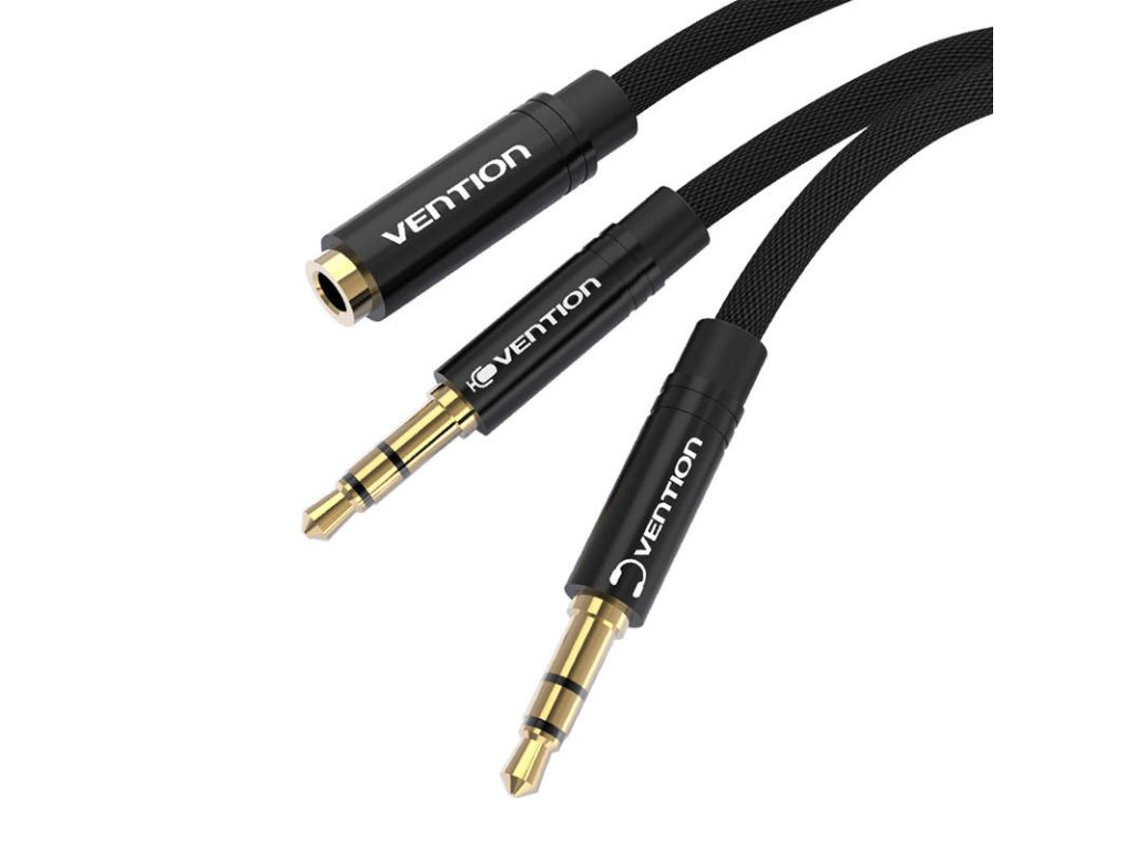 Kábel mini jack 3,5 mm (samica) na 2x mini jack 3,5 mm (samec) Vention BBLBAB 0,6 m (čierny)