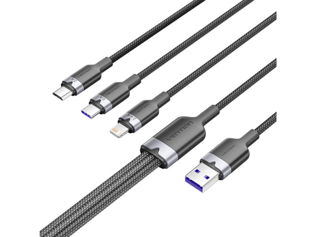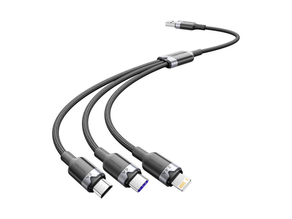 Kábel USB 2.0 A na 3 v 1 6A Vention CTRBG 1,5 m (čierny)