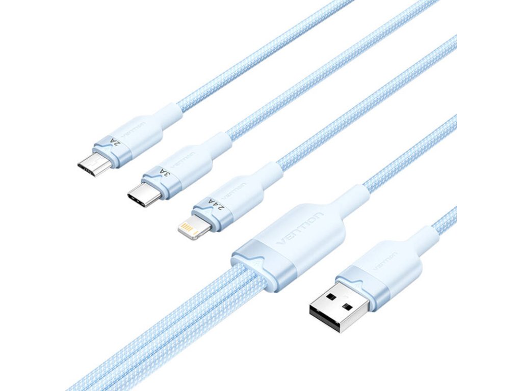 Kábel USB 2.0 A na 3v1 3A Vention CTPLG 1,5M (modrý)