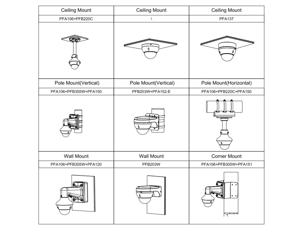 Kamera jest przeznaczona do zastosowań wewnątrz i na zewnątrz pomieszczeń. Obudowa pozwala na montaż kamery na suficie a przy zastosowanie odpowiedniego adaptera PFB203W również do ściany. Urządzenie oparte jest na przetworniku obrazu najwyższej jakości uzyskując rozdzielczość 2 MPX. Pozwala to na rozpoznanie wielu szczegółów oraz identyfikację osób. Urządzenie wyposażone jest w obiektyw zdalnie regulowany z 4-krotnym zoomem optycznym, co pozwala na przybliżenie obserwowanego obiektu.