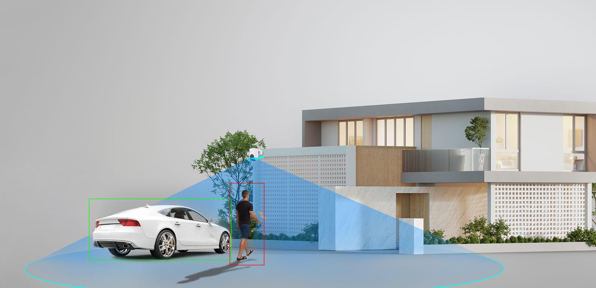 Kamera rozpoznaje nie tylko sylwetki ludzi, ale także kształty pojazdów – dzięki czemu otrzymujesz trafniejsze powiadomienia.