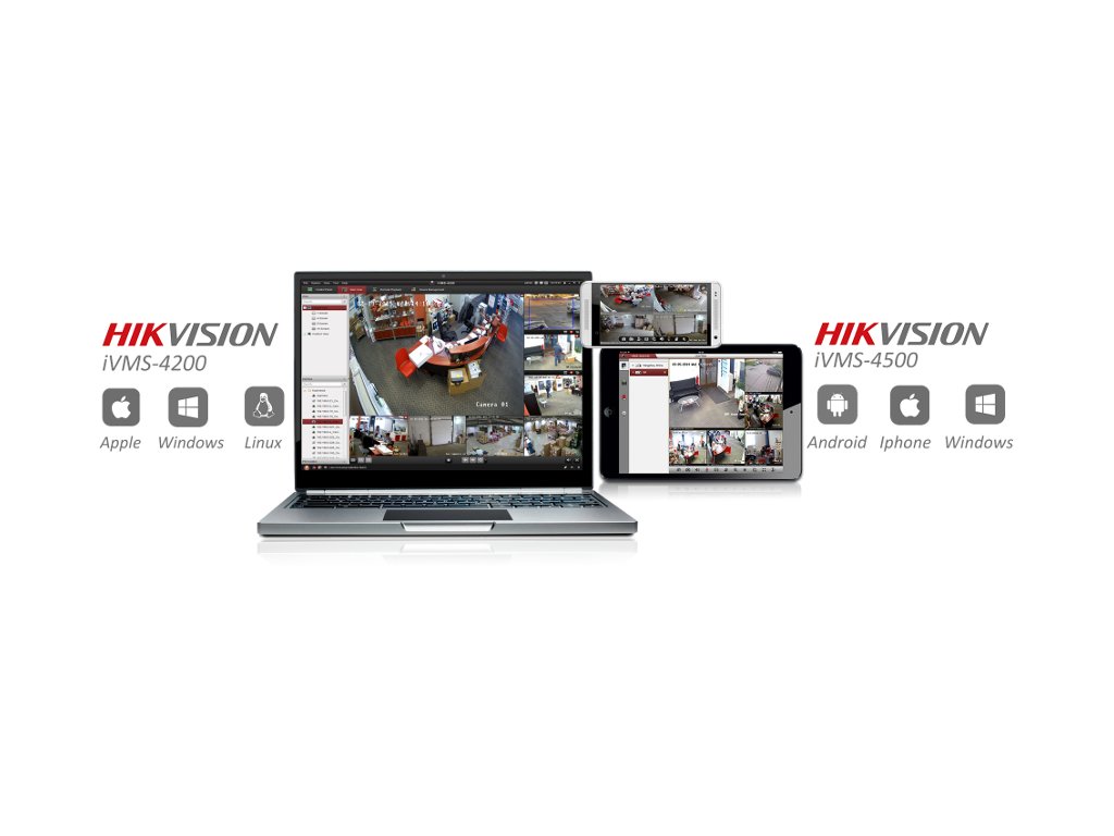 Kamera IP Hikvison zaprogramowana jest w oparciu o system IVMS, który stworzony został z myślą o zarządzaniu monitoringiem. Oprogramowanie Hikvision daje duże możliwości konfiguracji pracy kamery i rejestratora, a także umożliwia zdalny podgląd obrazu z kamery. Aplikacja IVMS dostępna jest komputery osobiste, laptopy oraz smartfony – wśród systemów operacyjnych obsługujących program znajdują się, m.in. Android, iOS, Windows, WindowsPhone czy MacOS.