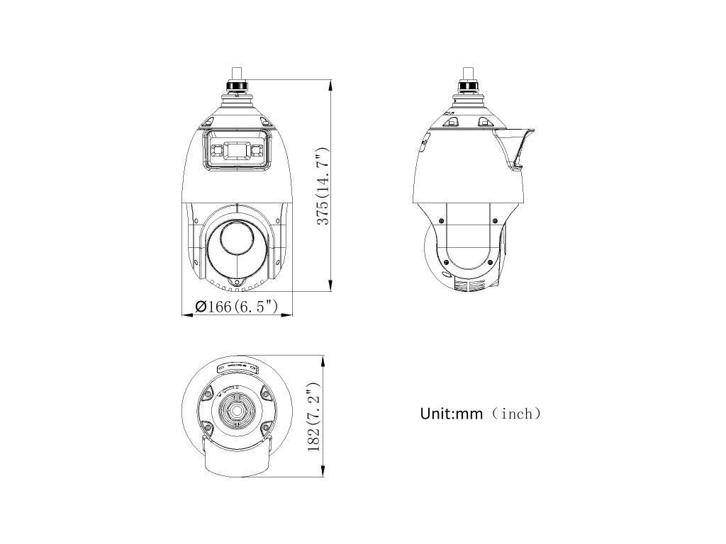 | Zoom / obiektyw | PTZ: 25× optyczny + 16× cyfrowy zoomObiektyw PTZ: 4.8–120 mm (F1.6)Obiektyw stały: 2.8 mm (F1.0) |