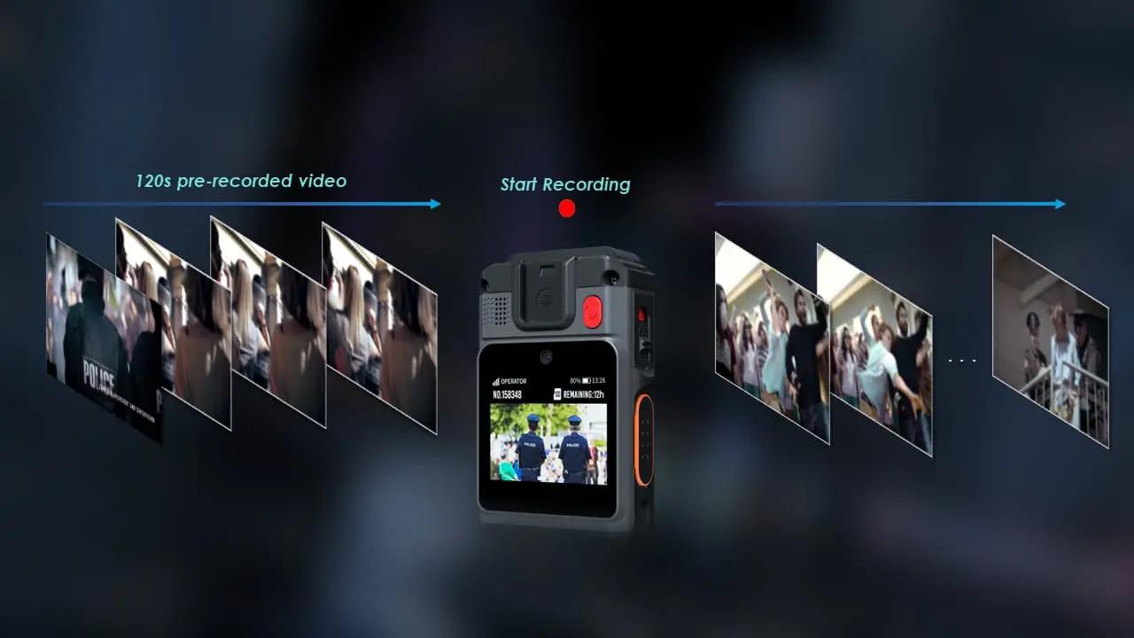 Funkcja nagrywania przed zdarzeniem pozwala kamerze nasobnej automatycznie zarejestrować obraz i dźwięk nawet do 120 sekund przed naciśnięciem przycisku nagrywania. Dzięki temu masz pewność, że żadna kluczowa chwila nie umknie – zwłaszcza w dynamicznych i nieprzewidywalnych sytuacjach.