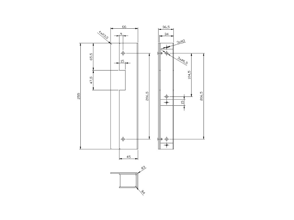 Kaseta przystosowana do zaczepów R3, R4 i R5. Przystosowanie do odpowiedniego zaczepu umożliwia odbojnik, który może być mocowany z obu stron kasety. Wykonana za blachy o grubości 2 mm (kaseta) i 2,5 mm (odbojnik).