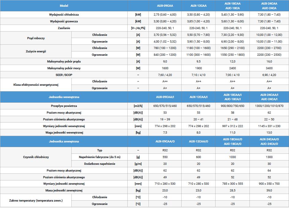 Klimatyzator Split, Pompa ciepła powietrze- powietrze C-SMART White AUX-24CA