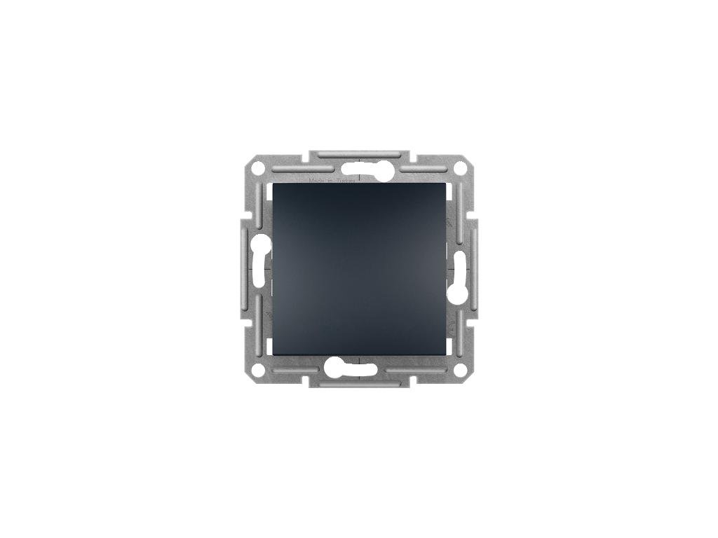 Łącznik krzyżowy w kolorze grafitowym, serii Asfora, marki Schneider Electric, o numerze katalogowym EPH0500371. Urządzenie może być wykorzystywany jako tradycyjny włącznik światła lub służyć do załączania innych urządzeń o maksymalnym poborze prądu do 10 A. Podłączeni e przewodów za pomocą zacisków śrubowych. Długie i solidne pazury utrzymywane są za pomocą metalowych prowadnic w pozycji pionowej, co ułatwia montaż oraz zwiększa bezpieczeństwo podczas mocowania mechanizmu w puszce instalacyjnej. Mechanizm posiada czytelny schemat oraz oznaczenie zacisków ułatwiające podłączenie. Dodatkowo, solidna ramka montażowa wykonana z galwanizowanego metalu posiada nacięcia ułatwiające pozycjonowanie. Produkt może być instalowany w ramkach wielokrotnych.