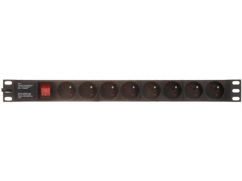 Listwa zasilająca umożliwia podłączenie do 8 urządzeń jednocześnie, przy maksymalnym łącznym obciążeniu 3680 W. Urządzenie montowane jest do szafy RACK 19".
