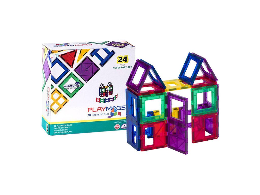 Dajte svojmu dieťaťu magnetické kocky Playmags a nechajte ho objavovať svet plný tvorivej hry a učenia! Súprava 24 dielov posúva zábavu pri stavaní na novú úroveň a umožňuje vášmu dieťatku vytvárať všetko, čo mu jeho fantázia prikáže. Žiarivé farby a rozmanité tvary zaručujú, že hranie sa nikdy neomrzí. Výrobok je vhodný pre deti od 3 rokov a získal ocenenie Dr. Toy a pečať Národného rodičovského centra.