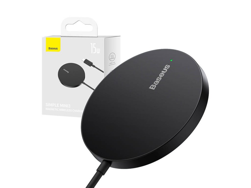 Magnetická bezdrôtová nabíjačka Baseus Simple Mini3 15W (čierna)