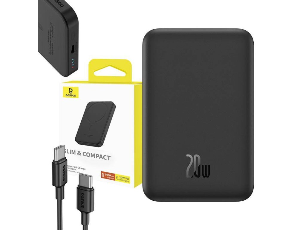 Magnetická mini powerbanka Baseus 5000mAh, USB-C 20W (černá)