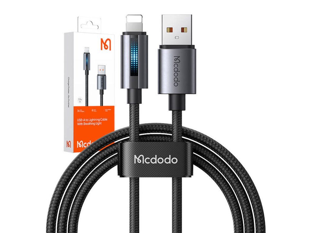 Kábel Mcdodo CA-5660 je inovatívne riešenie pre používateľov zariadení Apple, ktorí chcú nielen rýchle nabíjanie, ale aj moderný dizajn. Kábel je vybavený pulzujúcim LED svetlom, vďaka čomu ho nielen ľahko nájdete v tme, ale zároveň dodá jedinečný vzhľad každej nabíjacej stanici.