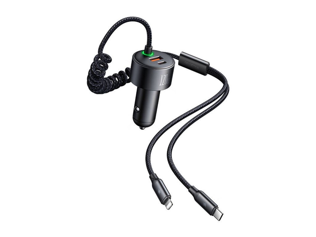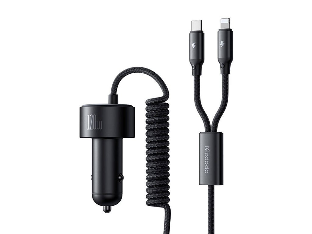 Mcdodo CC-0370 nabíjačka do auta, USB-C, Lightning, 120 W, navíjacie káble