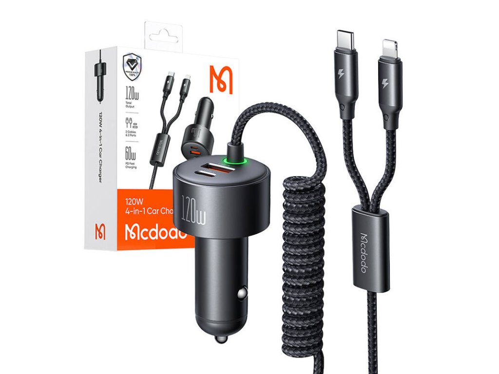 Mcdodo CC-0370 car charger, USB-C, Lightning, 120W, retractable cables