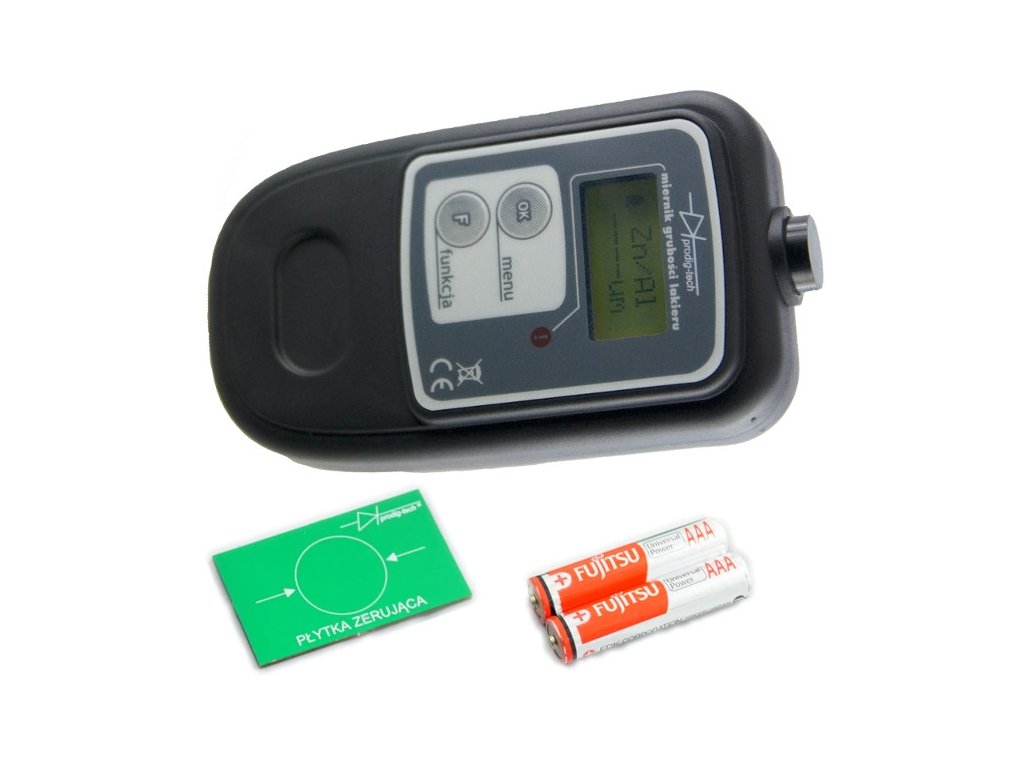 Co ważne – producent miernika zastrzega sobie możliwość rozbudowania w przyszłości przedziałów w czasie unowocześniania sprzętu. Pamiętać trzeba, że funkcja ASYSTENT ma jedynie charakter informacyjny i nie może być podstawą do podania jednoznacznej odpowiedzi na pytanie, czy samochód był w przeszłości poddawany naprawom blacharsko-lakierniczym. Wszystkie informacje pomiarowe wyświetlane są na wyświetlaczu LCD – rozdzielczość pomiaru wynosi 10 μm a całkowity zakres pomiarowy to 0-2000 μm. Urządzenie posiada funkcję zerowanie (kalibracji) za pomocą specjalnej płytki, która dołączona jest w zestawie.