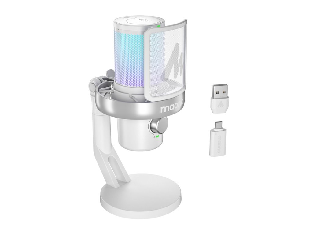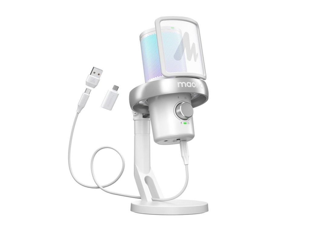 Estetiku mikrofónu dopĺňa zabudované podsvietenie RGB s viac ako 16 miliónmi možných nastavení farieb. K dispozícii sú 3 režimy osvetlenia a 13 preddefinovaných farieb, ktoré si môžete prispôsobiť v aplikácii Maono Link. Ovládanie hlasitosti mikrofónu a počúvania, rýchle prepínanie zdroja zvuku a tlačidlo stlmenia zvuku sa nachádzajú na prednom paneli zariadenia na intuitívne ovládanie bez nutnosti siahať po počítači.