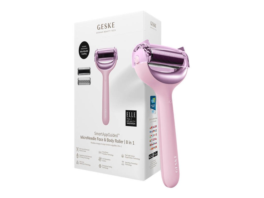 Splňte si sny o krásnej a hladkej pleti a cíťte sa ako v profesionálnom kúpeli v pohodlí domova. Mikroihličkový valček Geske 8 v 1 na tvár a telo vám ponúka jednoduché spôsoby, ako dosiahnuť požadované výsledky. S týmto valčekom získa vaša pleť nádherný lesk, textúru a pevnosť. Ľahko zredukujete jemné vrásky a vačky pod očami. Máte tiež prístup k špecializovanej aplikácii, ktorá ponúka personalizované plány starostlivosti o pleť a tisíce video tutoriálov. Sada obsahuje mikroihličkový nadstavec a chladiaci nadstavec. Geske získal od časopisu Elle ocenenie č. 1 v oblasti kozmetických inovácií.