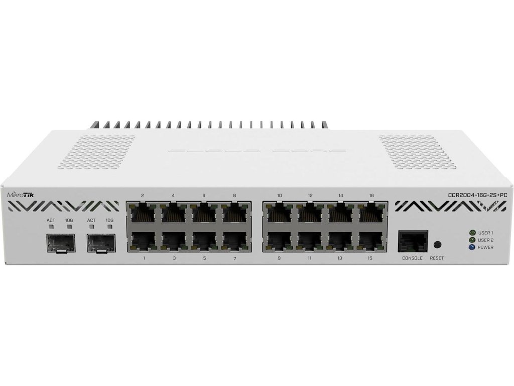 CCR posiada system RouterOS z licencją Level 6. Pod względem wydajności CCR2004-16G-2S+PC jest na równi z renomowanymi routerami CCR1009 oraz CCR1016.