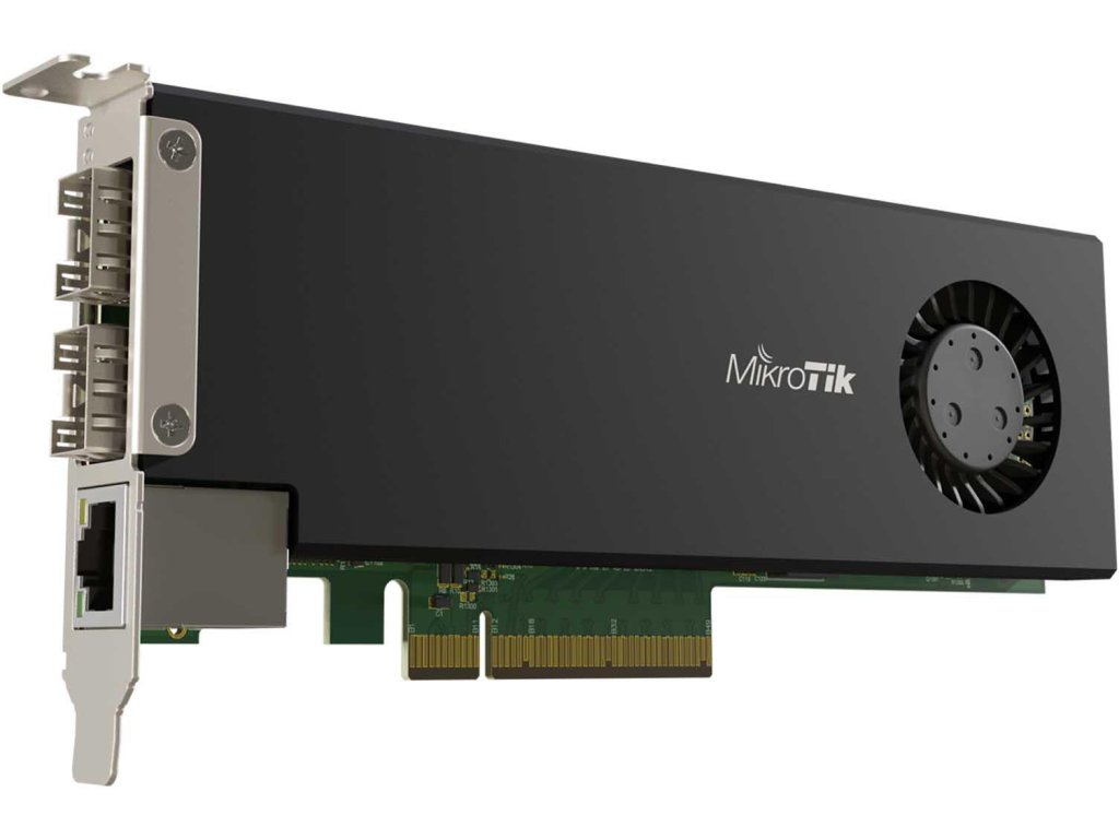 Karta sieciowa CCR2004-1G-2XS-PCIe dodaje pełne możliwości routera w samym serwerze. CCR2004-1G-2XS-PCIe łączy prosty adapter Ethernet 2x 25 Gigabit PCIe z imponującymi możliwościami pełnoprawnego routera. Domyślnie interfejs PCIe będzie wyświetlany jako cztery interfejsy wirtualnej sieci Ethernet. Dwa interfejsy w trybie przelotowym do slotów 25G SFP28. Pozostałe dwa wirtualne interfejsy Ethernet-PCIe są zmostkowane z portem Gigabit Ethernet w celu uzyskania dostępu do zarządzania. Użytkownik może dowolnie konfigurować wszystkie interfejsy i ustawienia, ponieważ działa tutaj w pełni funkcjonalny RouterOS.