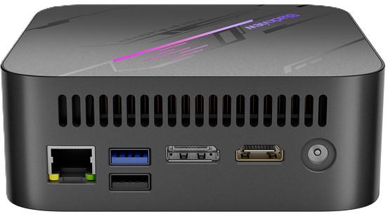 Dzięki małym wymiarom mini PC zajmuje niewiele miejsca na biurku. Pomimo kompaktowej obudowy oferuje bogaty zestaw portów – w tym USB-C, USB-A, HDMI, DisplayPort, LAN oraz gniazdo audio.