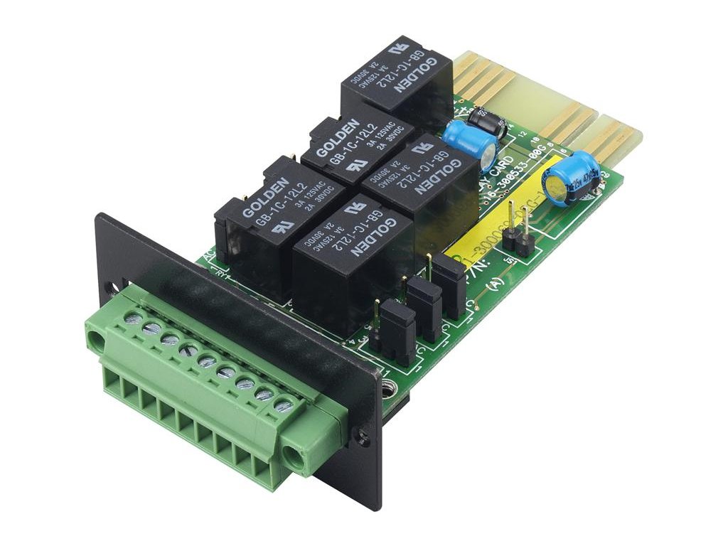 - Zapewnia zamknięte styki dla monitoringu UPS