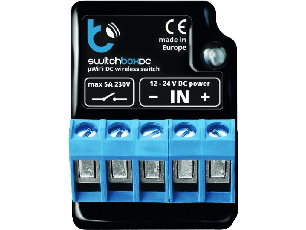 - switchBoxDC to inteligentny wyłącznik zasilany niskim napięciem (12-24V DC).