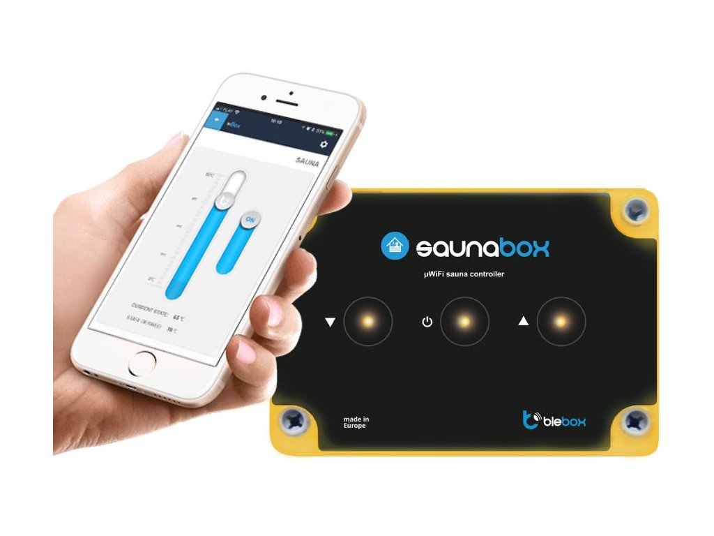 saunaBox to pierwszy na Świecie sterownik do saun, pozwalający włączać i wyłączać oraz sterować temperaturą w saunie z dowolnego miejsca na świecie – bez użycia dodatkowych urządzeń peryferyjnych