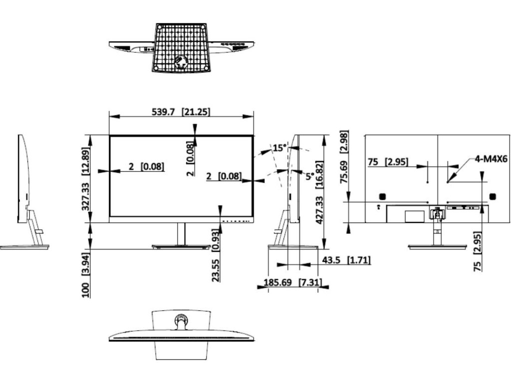| VESA | 75 mm × 75 mm (4 × M4 × 6 mm) |