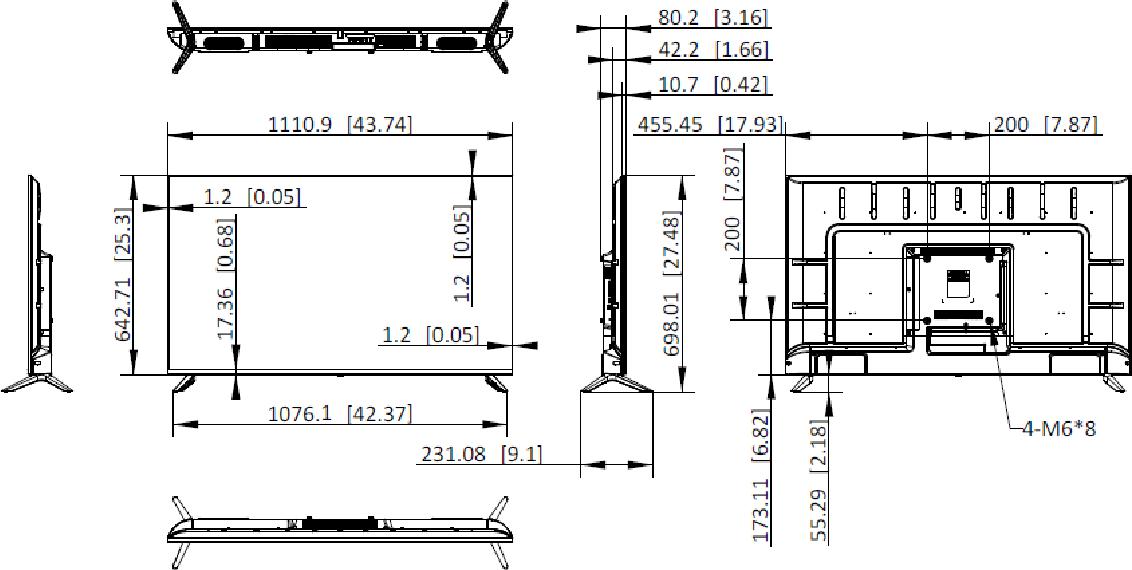 | Bez podstawy: 43,74" × 25,3" × 3,16" | |
