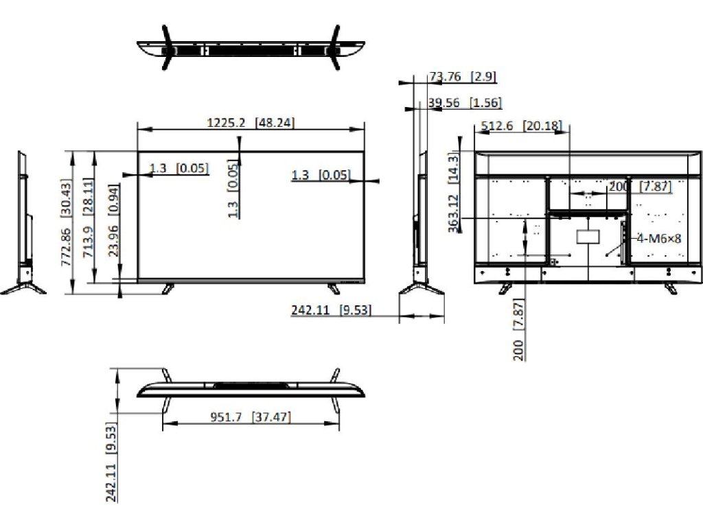 | Wymiary produktu (szer. × wys. × gł.) | Bez podstawy: 48,24" × 28,11" × 2,9" |