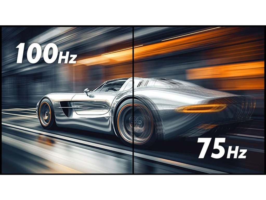 Częstotliwość odświeżania 100 Hz przekłada się na lepszą płynność obrazu. Migotanie obrazu jest zredukowane, a zmęczenie oczu jest również mniej odczuwalne. Zwiększona częstotliwość oznacza również łagodniejsze przejścia między kontrastowymi kolorami, płynniejsze sceny ruchu zarówno w filmach, jak i grach, a nawet zmniejszone migotanie kursora myszy.