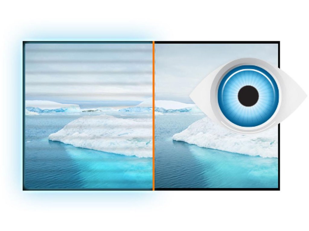 Technologia Flicker-free niweluje problem migotania dzięki zastosowaniu kontroli jasności ekranu poprzez regulację natężenia prądu (DC dimming). Funkcja redukcji niebieskiego światła ogranicza emisję światła, które jest najbardziej niezdrowe dla oczu.