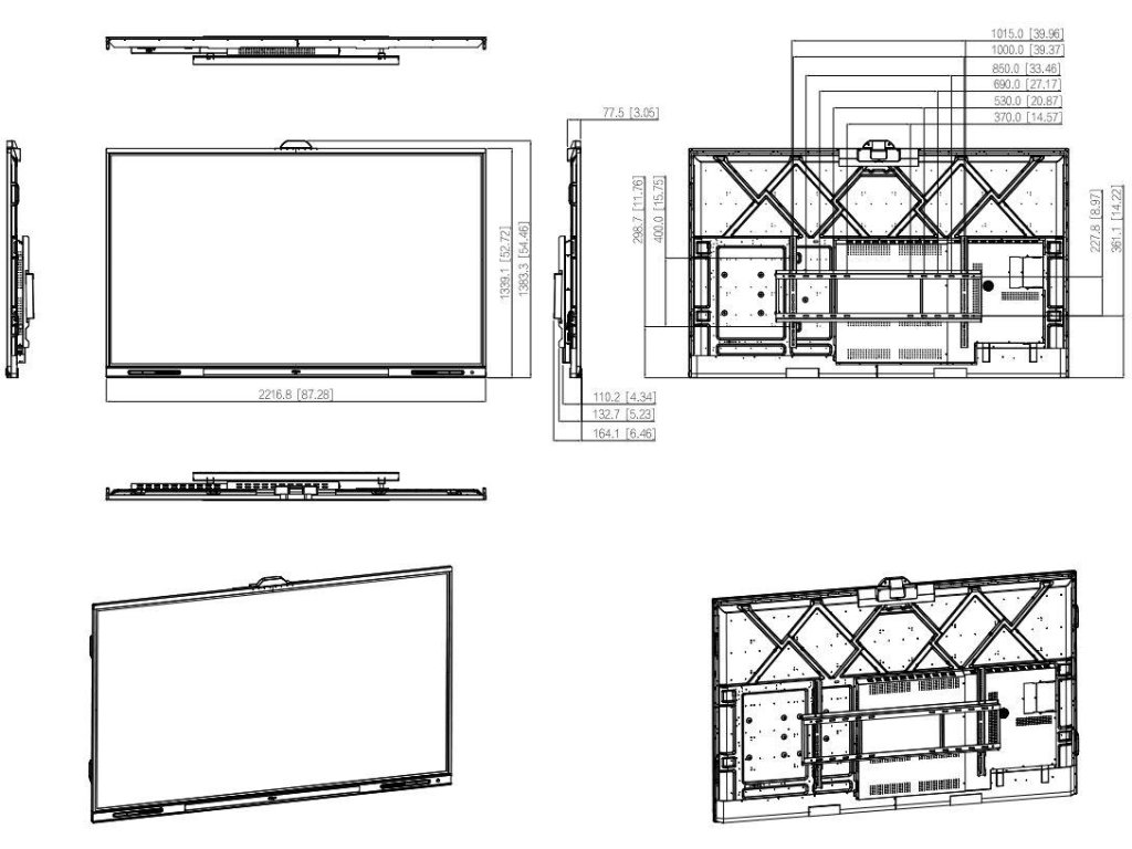 | Wymiary panelu | 65-calowy; 75-calowy; 86-calowy; 98-calowy | |||||||||