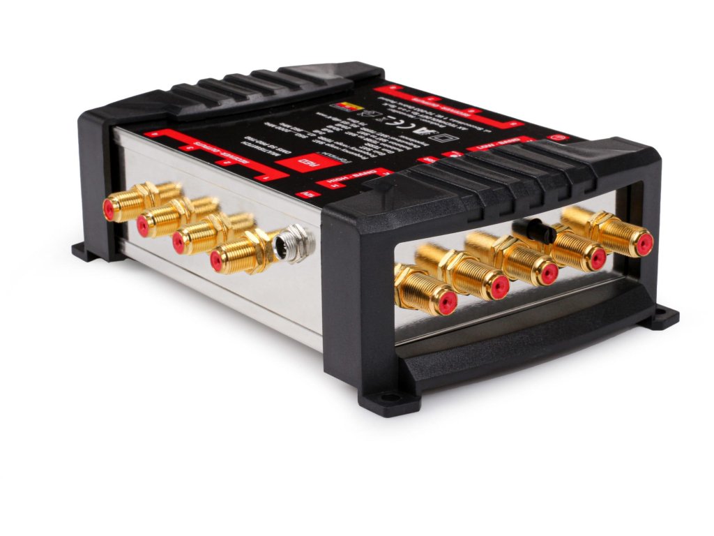 Rozdzielenie sygnału satelitarnego i naziemnego wychodzącego z multiswitcha odbywa się za pomocą gniazd abonenckich końcowych. Konwertery Quattro, Quad i gniazda abonenckie są dostępne w naszym sklepie. Zasilanie multiswitcha odbywa się za pośrednictwem zewnętrznego zasilacza dzięki czemu wyeliminowane jest zjawisko zwiększonej temperatury pracy będące częstym powodem uszkodzeń urządzenia.