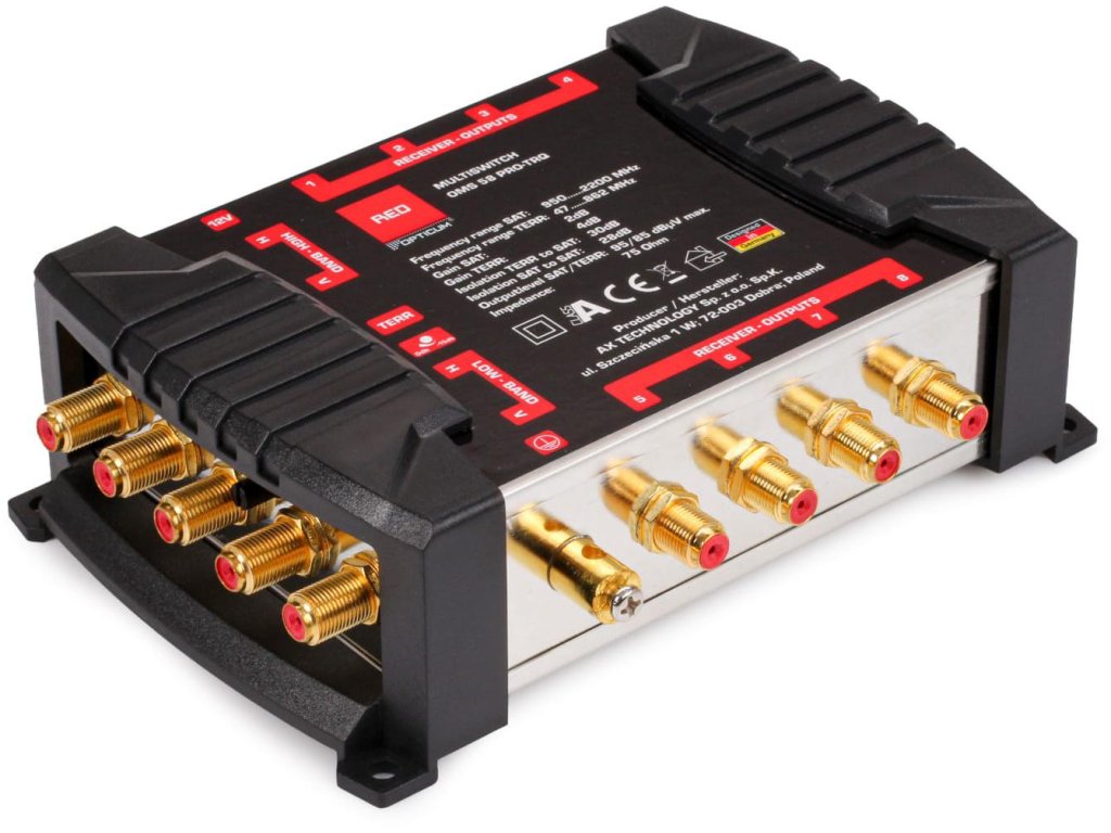 Pozłacane gniazda w sposób istotny zmniejszają straty sygnału na przyłączu kabli antenowych, oraz brak zjawiska utleniania. Multiswitch automatycznie rozpoznaje rodzaj sygnału jaki będzie przekazywany do tunerów.