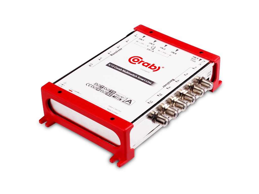 CORAB MULTISWITCH SMART LINE jest to urządzenie służące do rozdzielenia sygnału telewizyjnego, posiada 5 wejść: 4-y satelitarne i 1-dno naziemne oraz 12 wyjść satelitarno-naziemnych. Multiswitch posiada wewnętrzny zasilacz a wysokiej jakości obudowa gwarantuje wysoki poziom ekranowania. W przypadku zbyt silnego sygnału urządzenie ma możliwość obcięcia go o +/- 20dB za pomocą przełącznika "active".