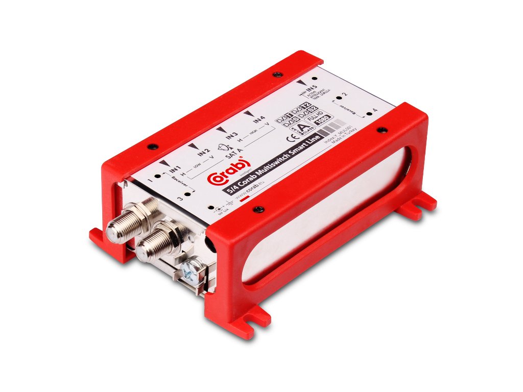 CORAB MULTISWITCH SMART LINE jest to urządzenie służące do rozdzielenia sygnału telewizyjnego, posiada 5 wejść: 4-y satelitarne i 1-dno naziemne oraz 4 wyjść satelitarno-naziemnych. Multiswitch posiada wewnętrzny zasilacz a wysokiej jakości obudowa gwarantuje wysoki poziom ekranowania. Urządzenie samodzielnie wykrywa czy dana antena jest aktywna czy pasywna poprzez odpowiednie dopasowanie napięcia.