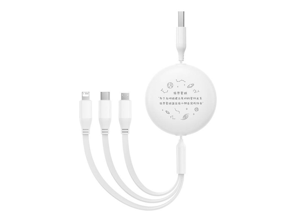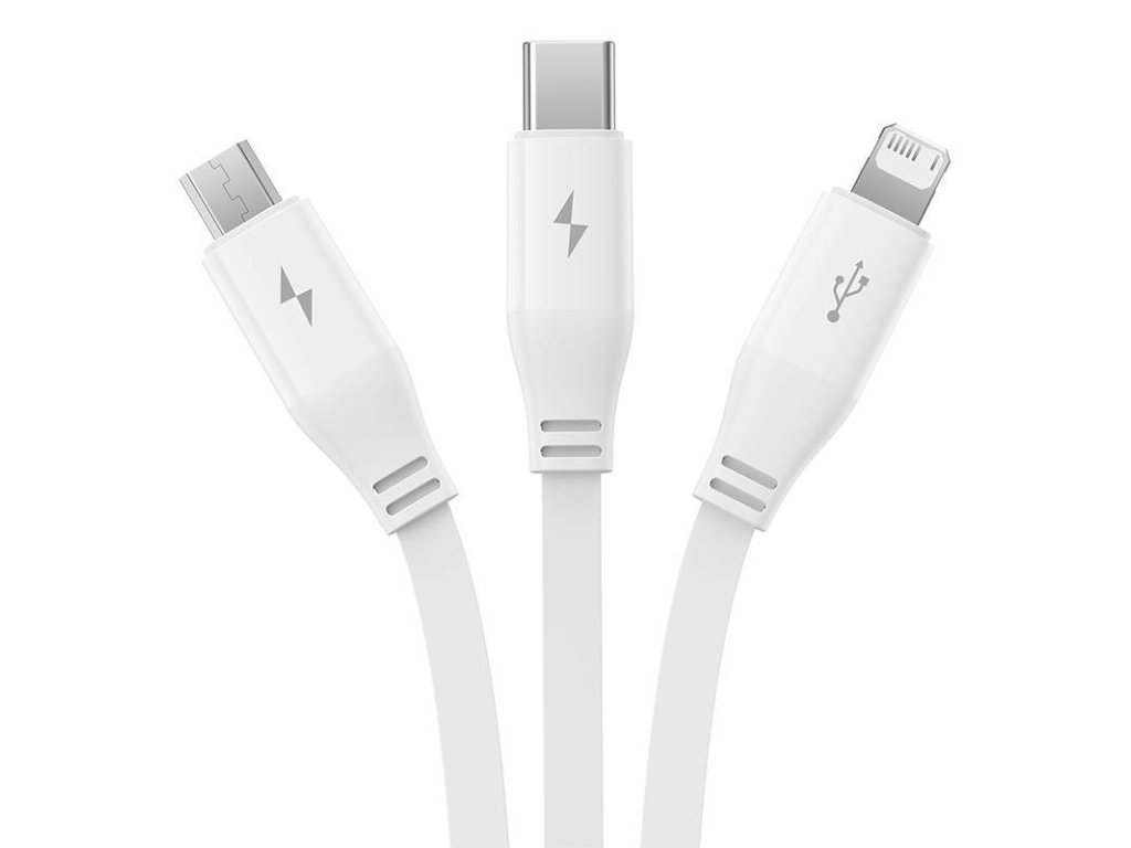 Nabíjací kábel 3v1 Baseus USB na USB-C, USB-M, Lightning 3,5 A, 1,1 m (biely)
