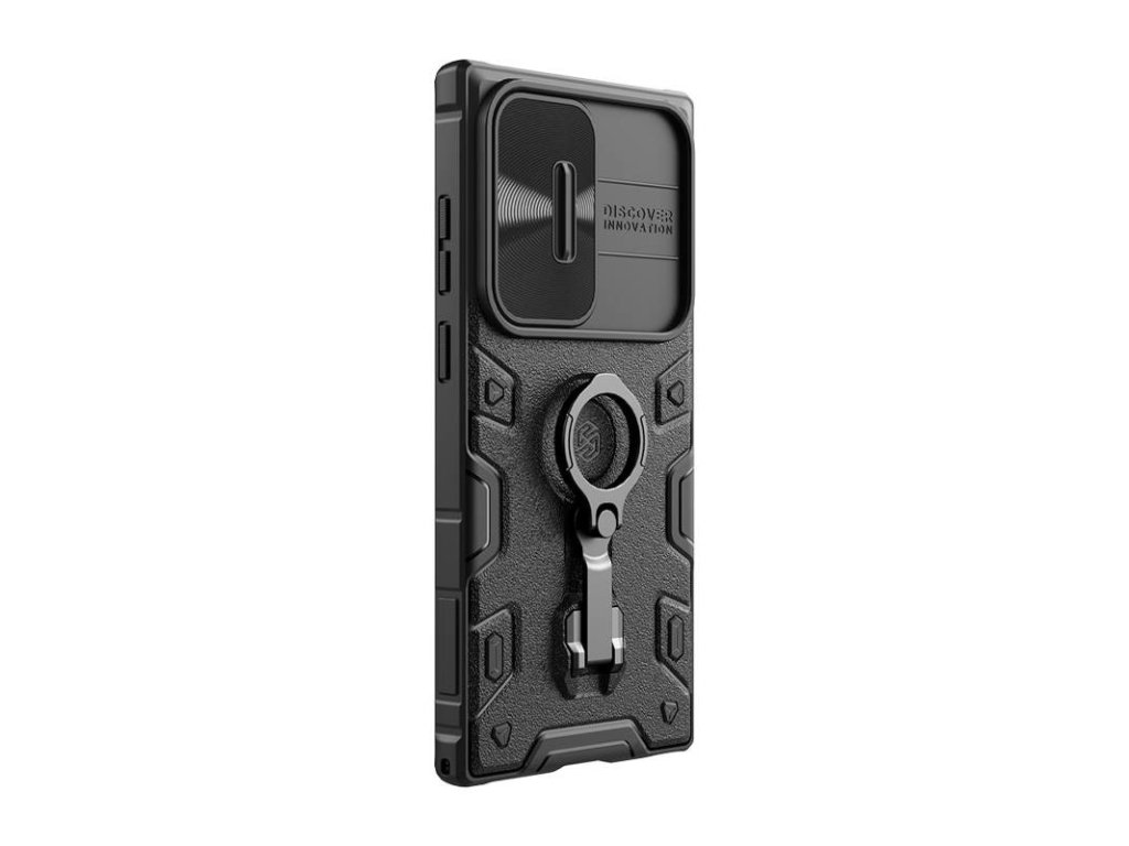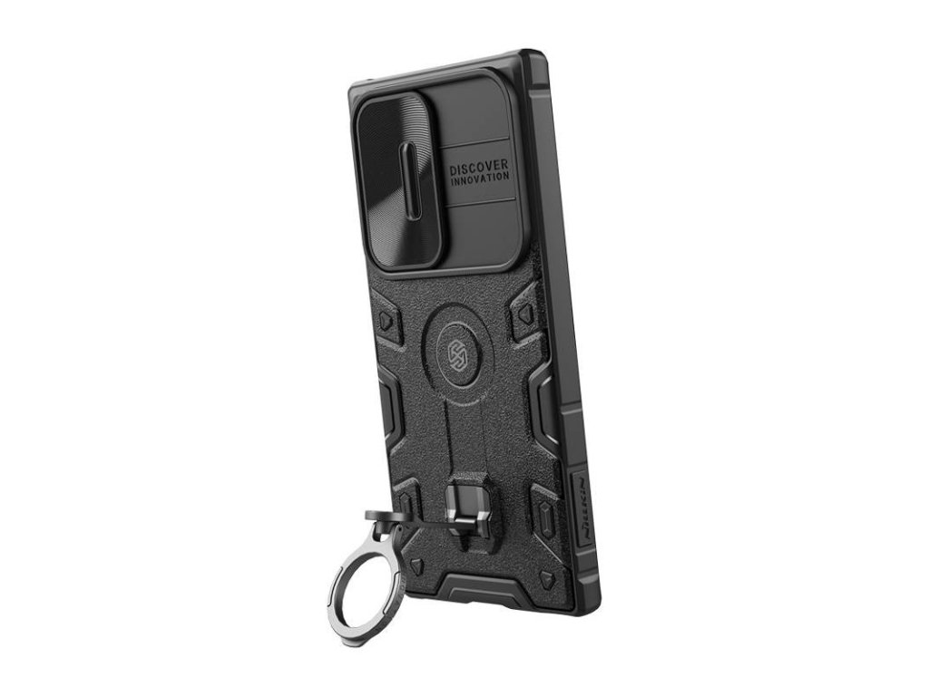 Puzdro CamShield Armor Pro od spoločnosti Nillkin je vybavené funkčným úchytom na prst, ktorý môžete použiť ako stojan na telefón alebo magnetický úchyt do auta. Okrem toho má posuvný kryt, ktorý chráni objektív fotoaparátu pred poškriabaním a prachom. Výrobok dokonale priľne k vášmu smartfónu a poskytuje mu komplexnú ochranu. Je kompatibilný s telefónom Samsung Galaxy S23 Ultra.