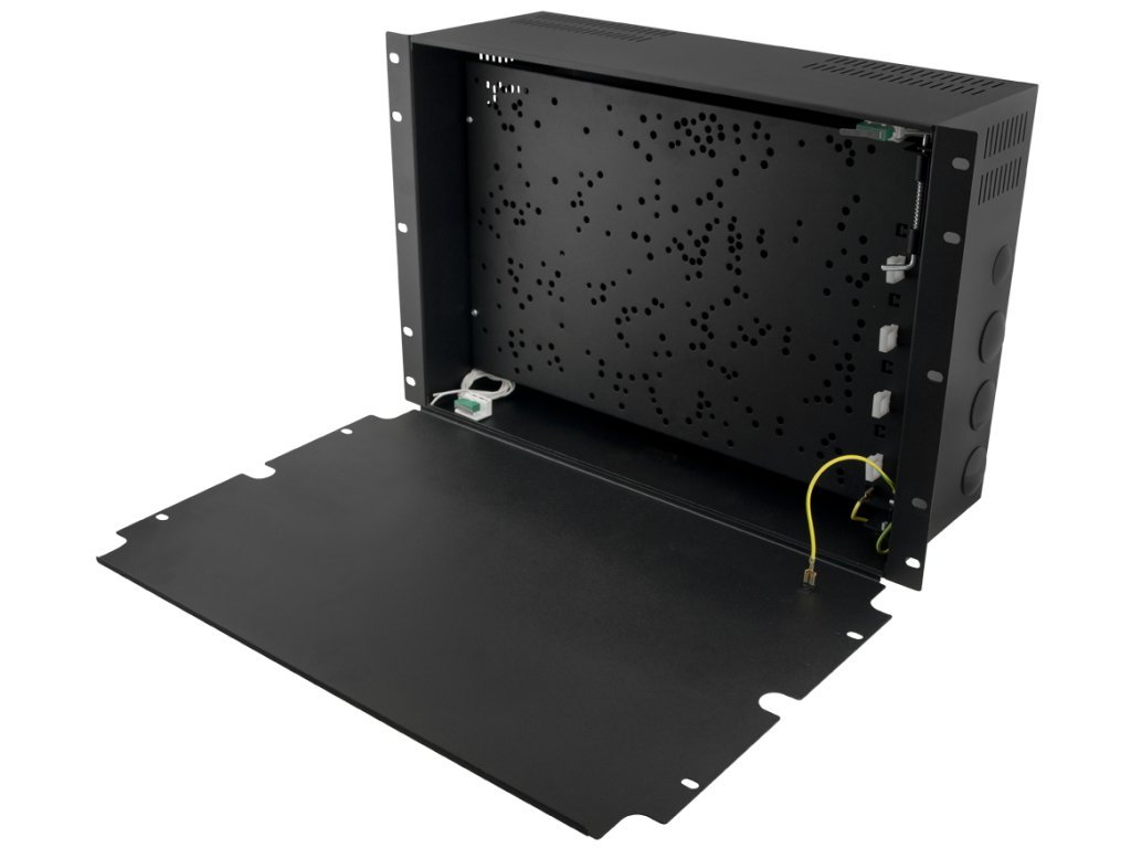 - Uwagi: mocowanie doczołowe do profili RACK 19\",w komplecie 10 śrub M6 + koszyki,obudowa posiada na wyposażeniu blachę montażową (I poziom),obudowa posiada na wyposażeniu uchylną półkę montażową (II poziom),uniwersalne otworowanie pod centrale alarmowe / ekspandery firm:DSC, PARADOX,RISCO, SATEL, PYRONIX, TEXECOM, TELMOR, ROGER, EBS