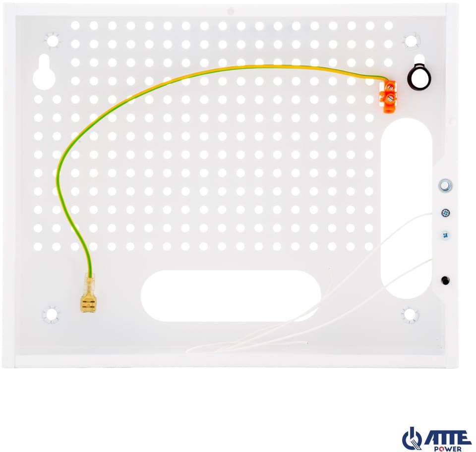 Obudowa wewnętrzna, IP20, 300x320x90mm, zamykana na śrubę, miejsce na akumulator 18Ah, systemowe otworowanie w rastrze 10,8mm, metalowa, biała, typu ABOX-F