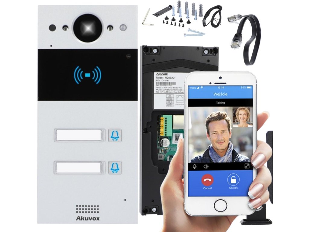 - Akuvox R20BX2 to solidnie wykonany panel, który umożliwia komunikację wideo między osobami przed drzwiami, a mieszkańcami budynku. Dzięki niemu można widzieć gości i rozmawiać z osobami stojącymi na zewnątrz.