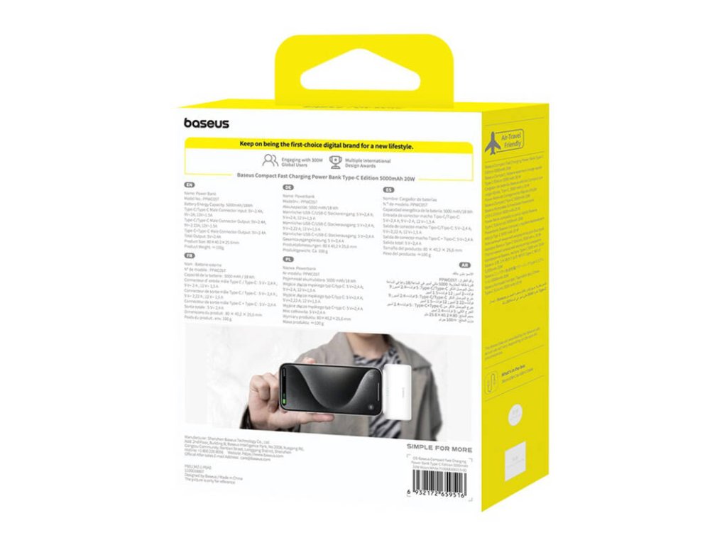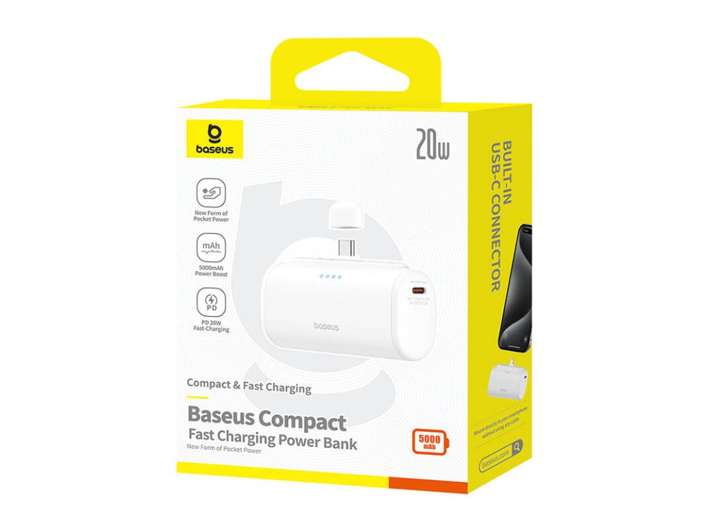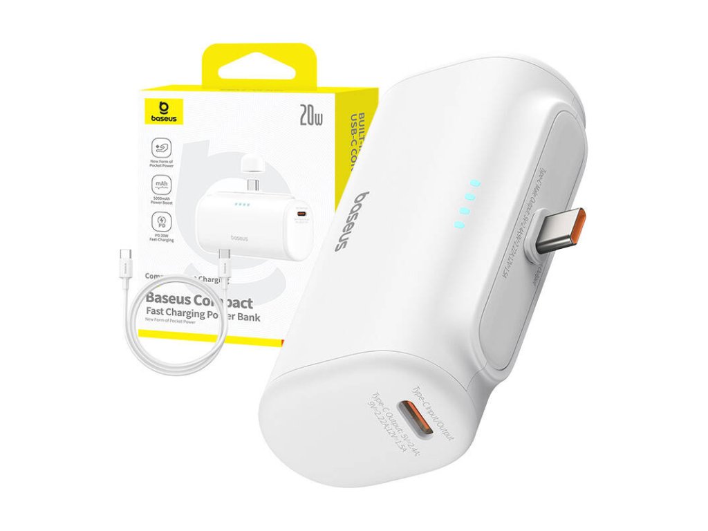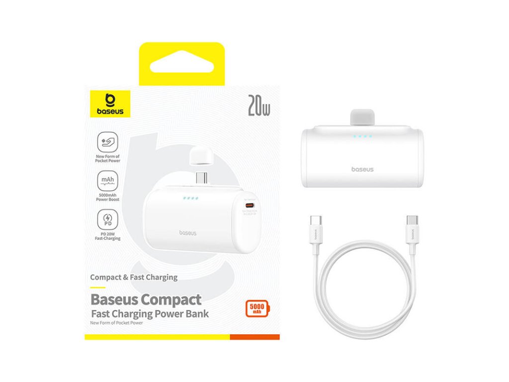 Baseus Compact 5000mAh Powerbank, 20W, USB-C (biela).