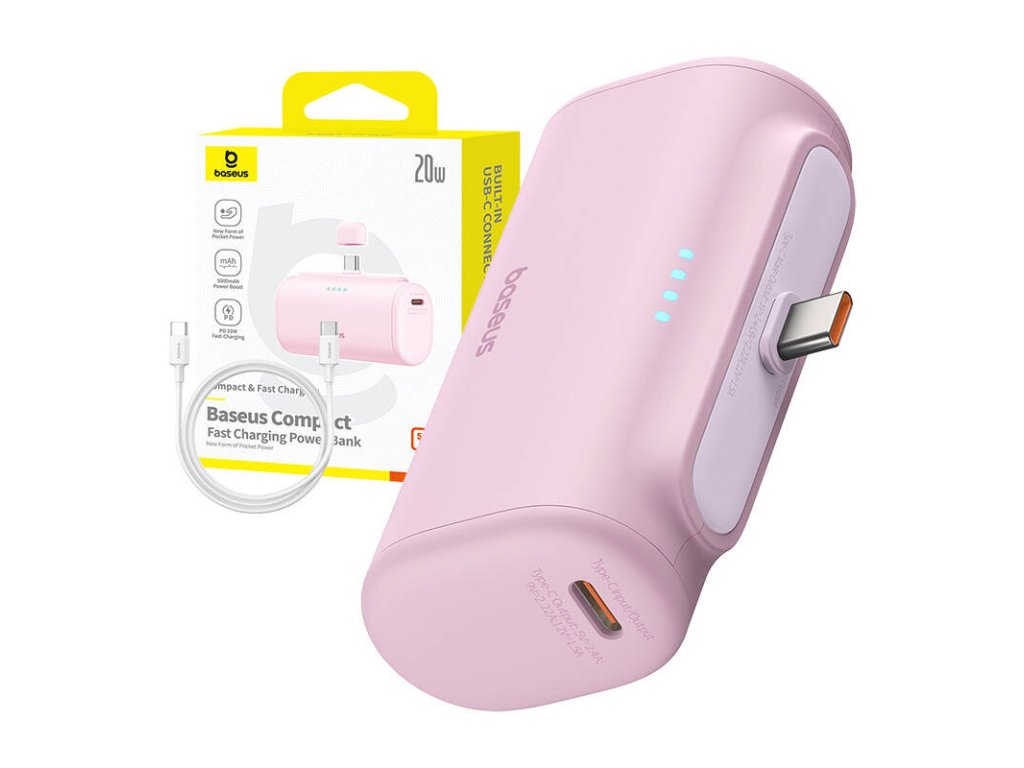 Baseus Compact USB-C Powerbank 5000mAh, 20W (ružová)
