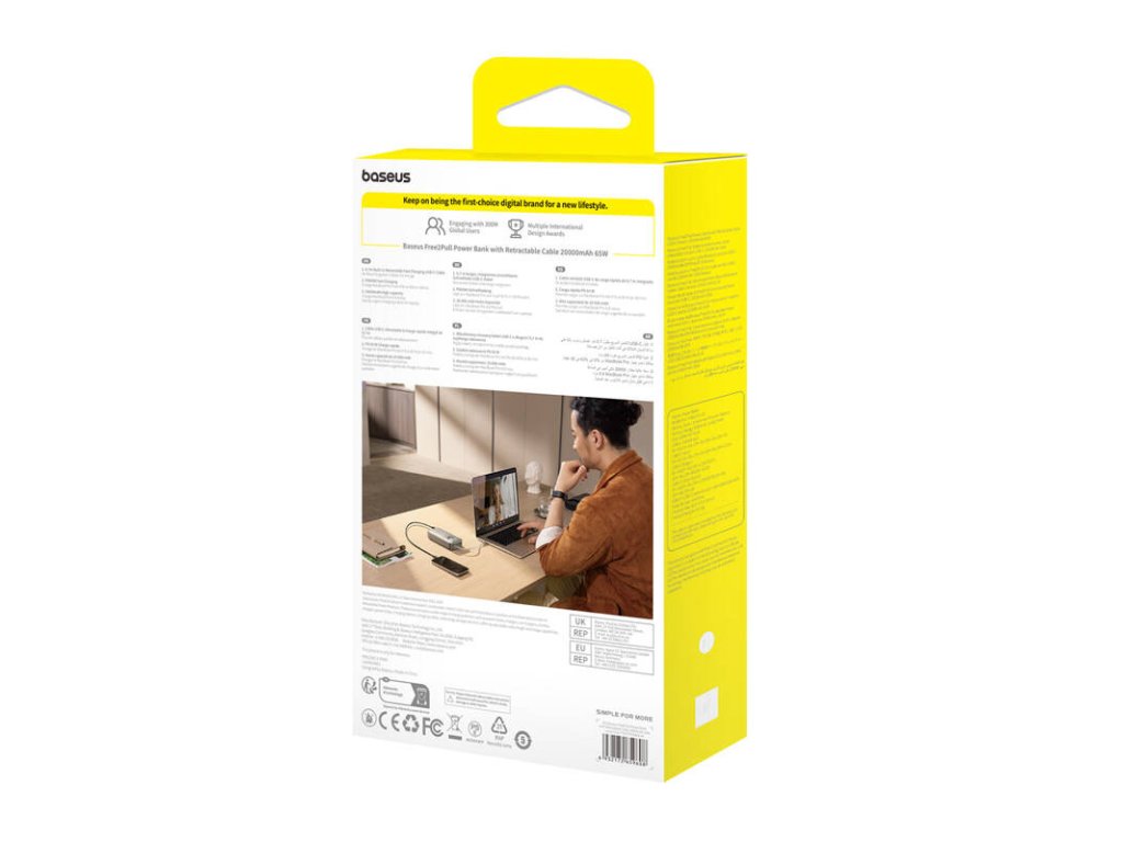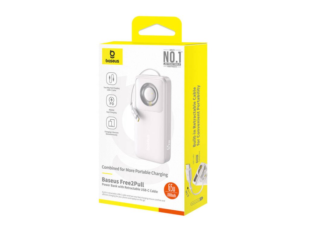 Nedovoľte, aby vybitá batéria obmedzovala vaše možnosti! Powerbanka Baseus Free2Pull s kapacitou 20000 mAh ponúka až 65 W nabíjacieho výkonu, ktorý vám umožní rýchlo nabíjať vaše zariadenia na cestách. Vďaka vysúvaciemu káblu USB-C môžete ľahko pripojiť svoje zariadenie bez toho, aby ste so sebou museli nosiť ďalšie káble. Vďaka širokej kompatibilite ju môžete úspešne používať na nabíjanie takmer všetkých svojich zariadení.