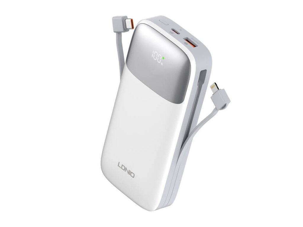 Powerbanka LDNIO PQ20 je navrhnutá pre maximálne pohodlie používateľa. Má dva zabudované káble - USB-C a Lightning, vďaka tomuto riešeniu nemusíte pamätať na to, aby ste si so sebou brali ďalšie káble, čo vám uľahčí používanie powerbanky na cestách alebo v práci. Zariadenie je tiež vybavené intuitívnym LED displejom, ktorý vás informuje o aktuálnom stave nabitia.